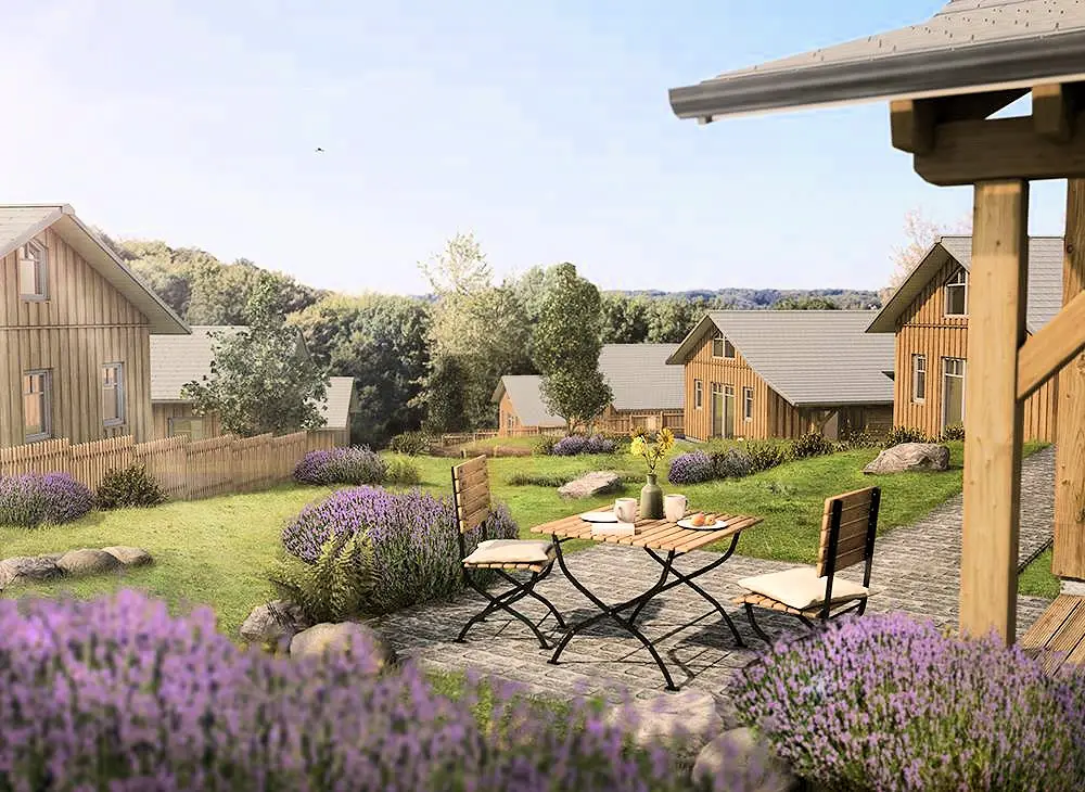 70 Chalets zum Entspannen und Wohlfühlen baut die Kampshoff GmbH im Bergischen Land oberhalb von ..