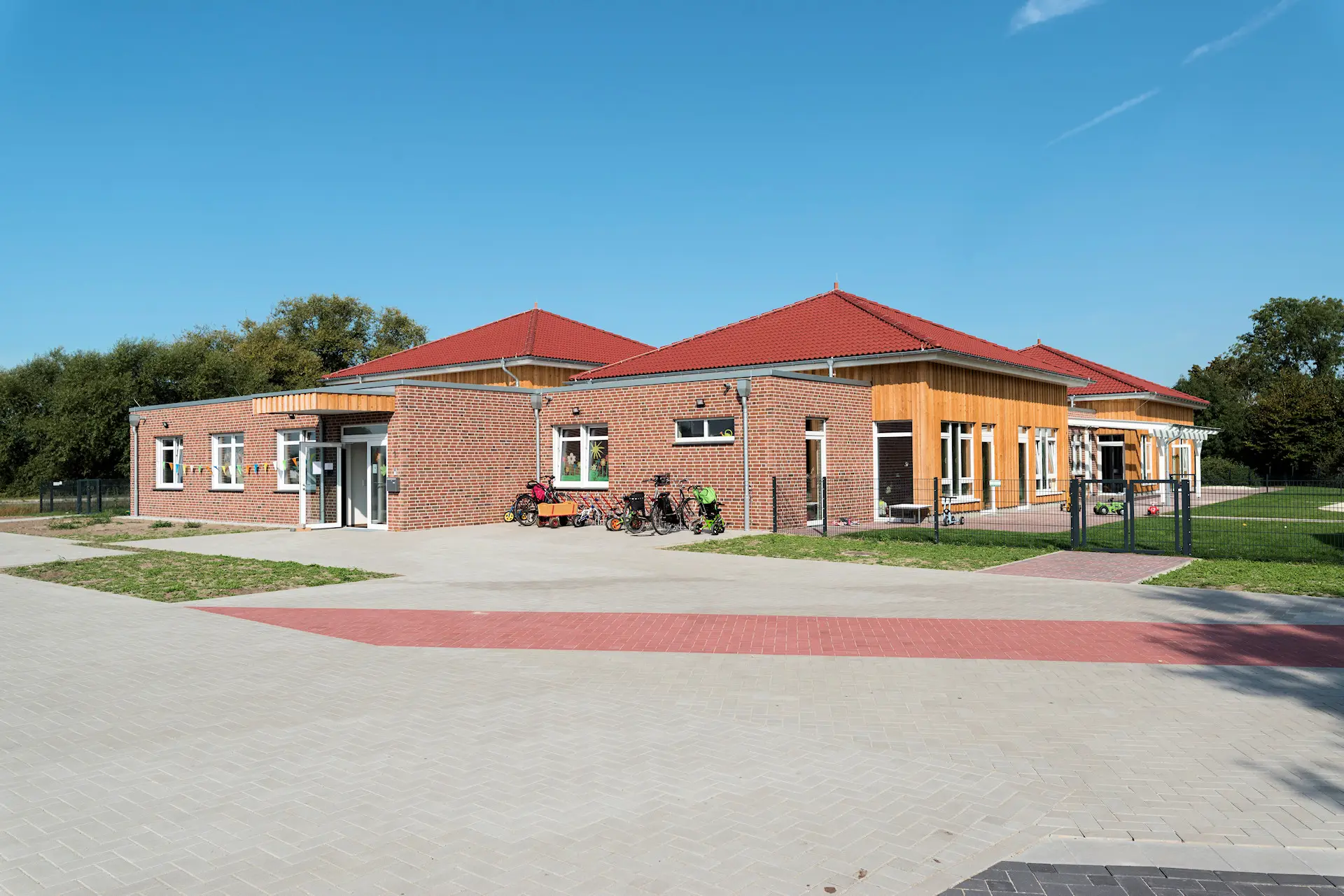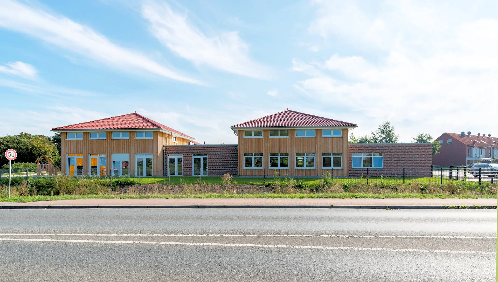 KiTa in Borken mit Holzfassade und Klinkerfassade Holzbauweise