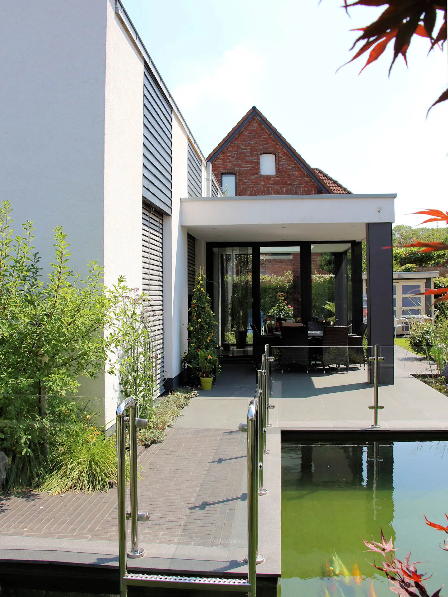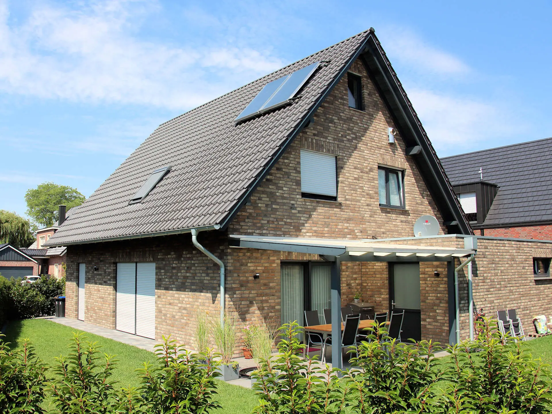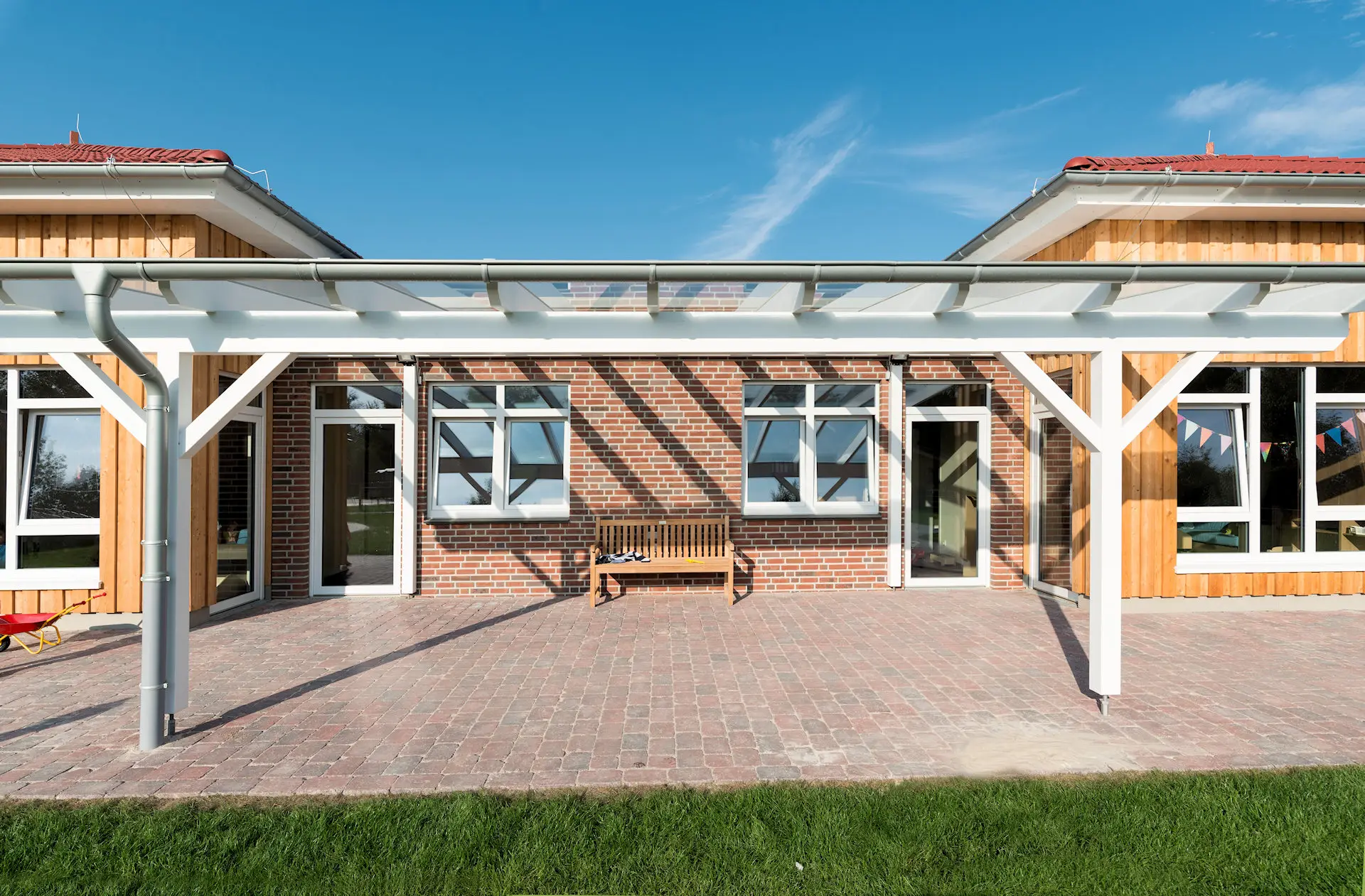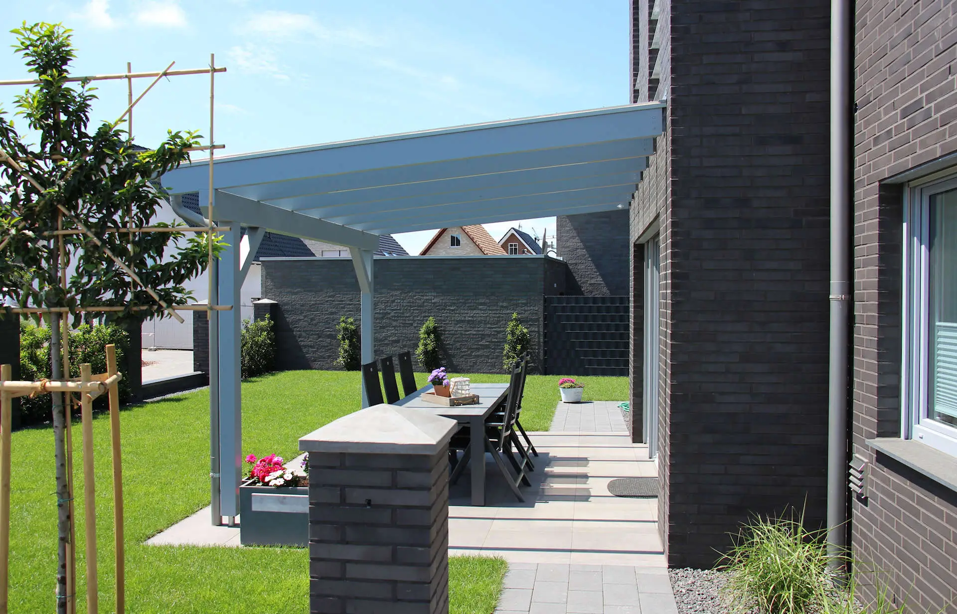 Und nebenbei lässt sich auch sehr leicht ein Sonnenschutz an so einer Überdachung anbringen.